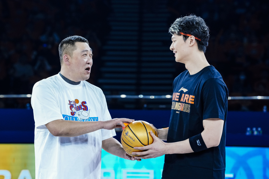 赛前,姚明、李秋平、章文琪等上海队名宿现身上海体育馆,俱乐部为他们准备了功勋纪念章。老队长章文琪将一枚刻着2001—2002赛季夺冠阵容全体成员签名的纪念篮球,交到现任队长王哲林手中,以表期待。